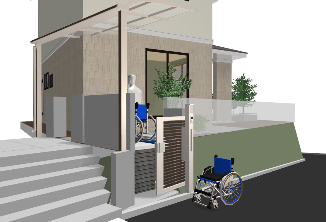 マイホームデザイナーでは、パーツを使用して、段差解消機のある3Dパースを作成することができます。