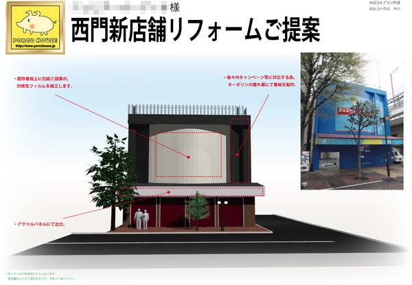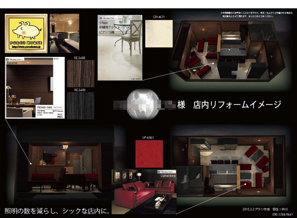 店舗の内外装はもちろんのこと、お店の看板などもデザインする中川さん。デザインはあくまでもサービスでリフォームの施工が本業、といいながら、頼まれれば新店オープンのチラシまでサービスで制作することもあるそうです。そんなチラシにも3Dパースは役に立つとのこと。3Dマイホームデザイナーをフル活用している中川さんです。