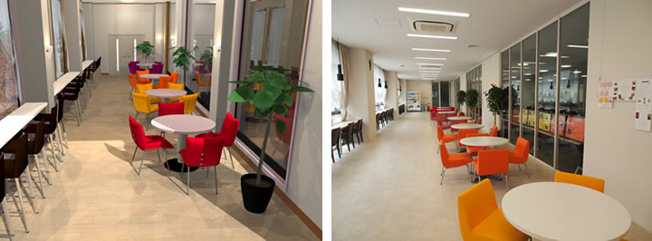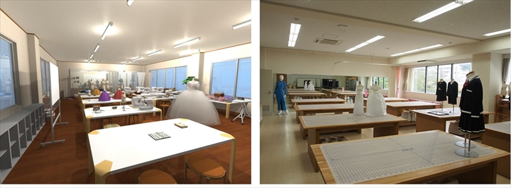 アパレルがご専門の先生や福祉がご専門の先生にとって、平面図だけで完成を予想するのは難しいものです。『壁一面を鏡にするとこんな感じに見えます』『ベッド三台をこう並べると学生の動線はこうなります』といったことは、3Dパースを見てもらうことで、納得いただくことができたとのことです。