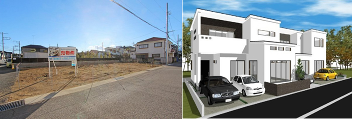 【土地写真に合わせた3Dパースを提示することで施主のイメージが膨らむ】