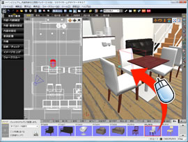 3Dデザイナーシリーズに専用素材を追加するだけですぐに使えるので、簡単な操作でスピーディーに店舗デザイン提案を行えます。
