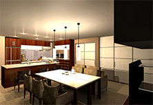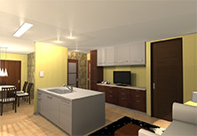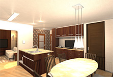 3Dパースは打ち合わせとプランニングがすべて終了して、完成したデザインをお見せするために使われているのが一般的のようですが、私達アカデミーでは反対に、まず3Dパースでインテリアイメージをスピーディに作り上げ、それを活用してデザインを検討するという活用の仕方を取り入れています。そのため、クライアントとの打ち合わせを重ねるごとに、自然と何枚ものイメージパースができ上がります。