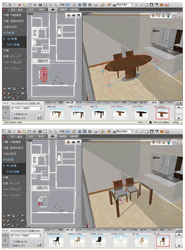 また、現在(2008年12月)自由が丘店がリニューアル作業に入っているのですが、その店舗デザインにも3Dマイホームデザイナーは活用されています。