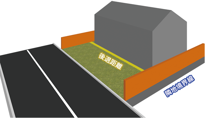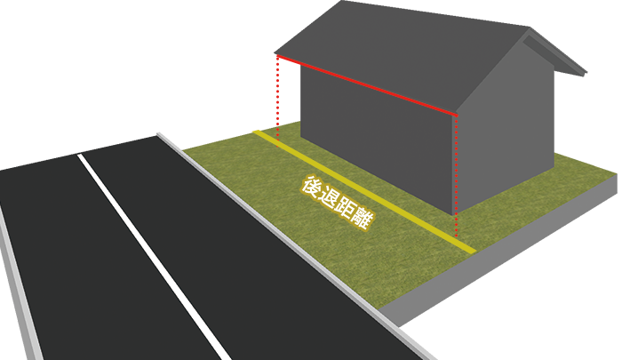 - 後退距離は「道路境界線~建物外壁」ではなく「道路境界線~建物の一番近い部分の距離」なので、この場合は軒の先端になります。これらは間違えやすいので、要注意だよ。