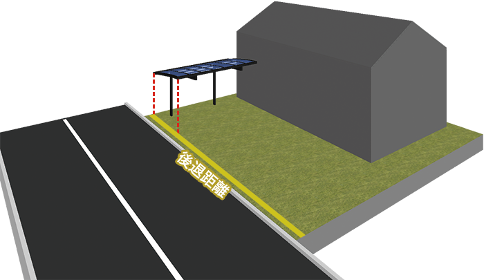 - よく迷われるのはカーポートです。概ねカーポートは5m2以上なので、後退距離内には含めません。
