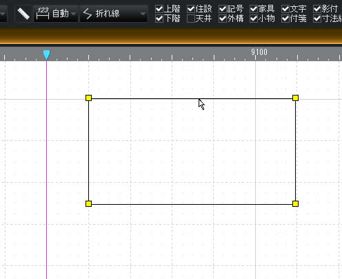 マウスを図面の枠に移動させて、クリック。(これが始点となります)