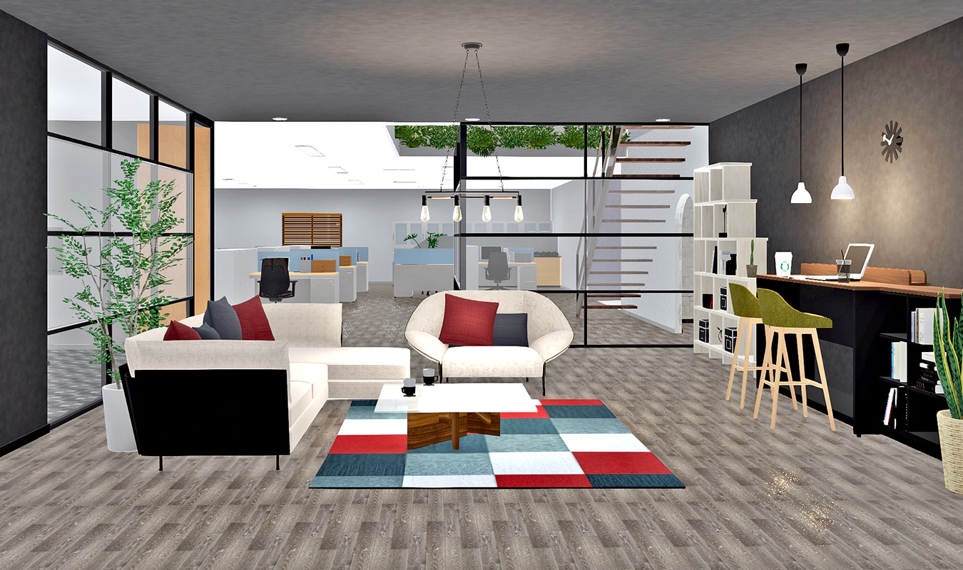 家具やキッチンなどのオフィス以外のデータ素材も多数収録しているため、デザイン性の高いオフィスデザインも可能です。