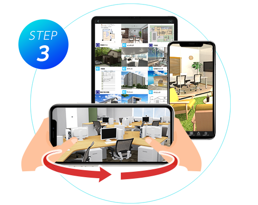 1クリックで立体化。豊富なデータ素材で更に理想のオフィスに。