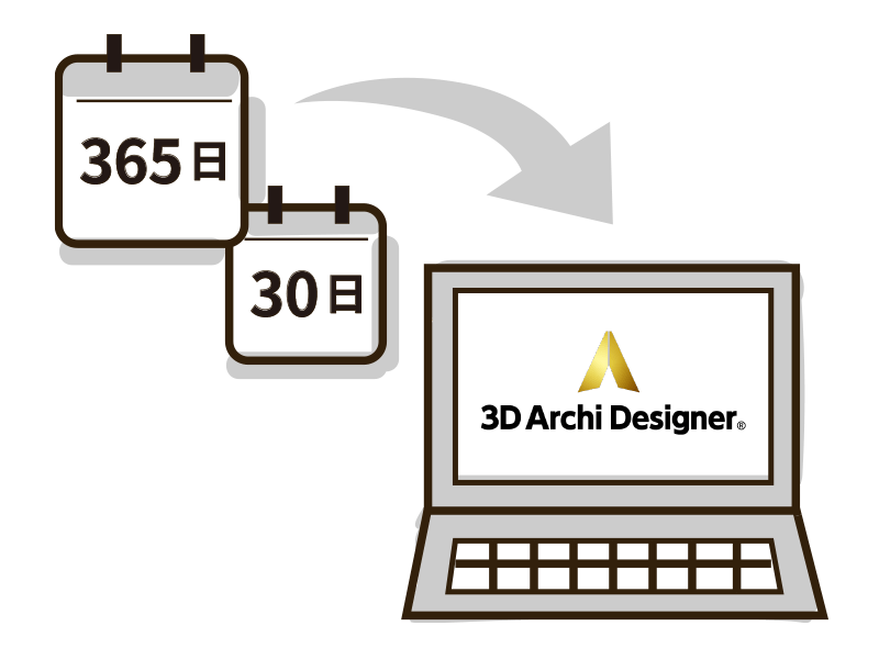 クラウドライセンスは、ご契約いただいた期間に応じて3Dアーキデザイナーをご利用いただけるライセンスです。