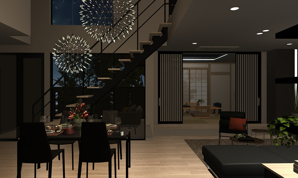 ※3D編集画面の「ライティング」機能で、太陽光や照明器具の明るさ・色味を変更してイメージを作成できます。