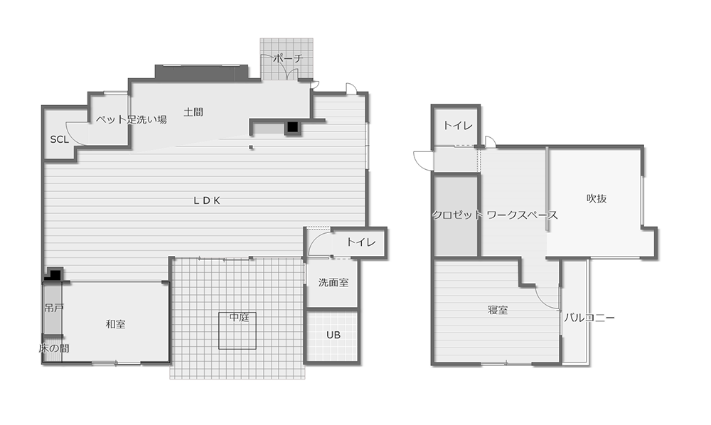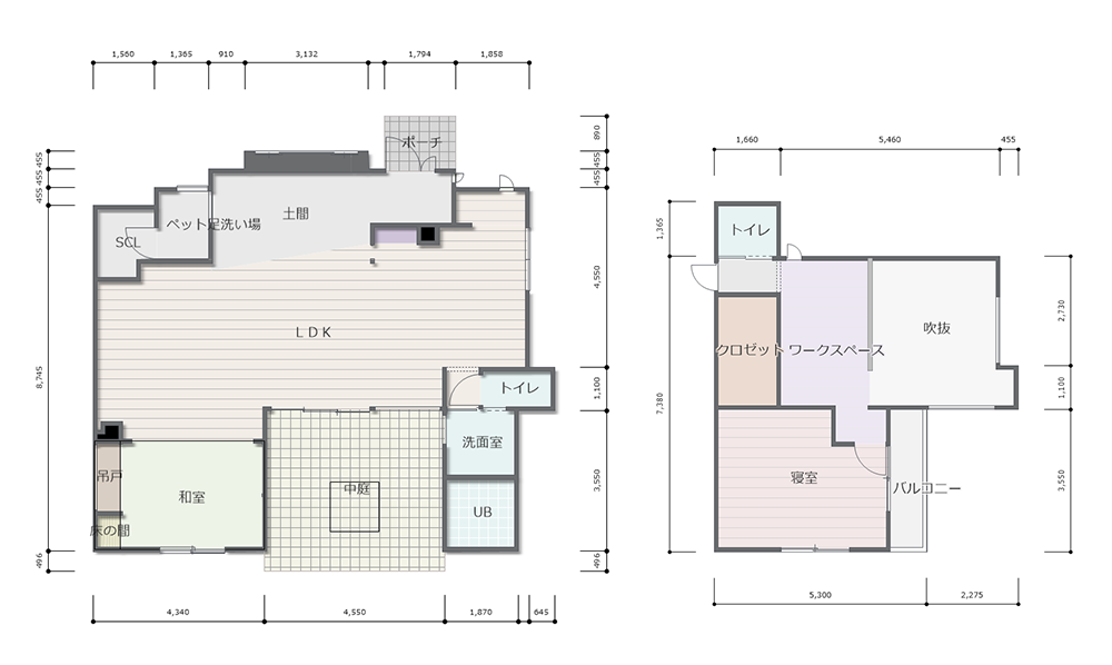 本サンプルは下記「プラン概要」をもとにプラン作りから始め、3Dアーキデザイナーでデザインしました。(プラン・m3da作成:吉田 久恵 氏)