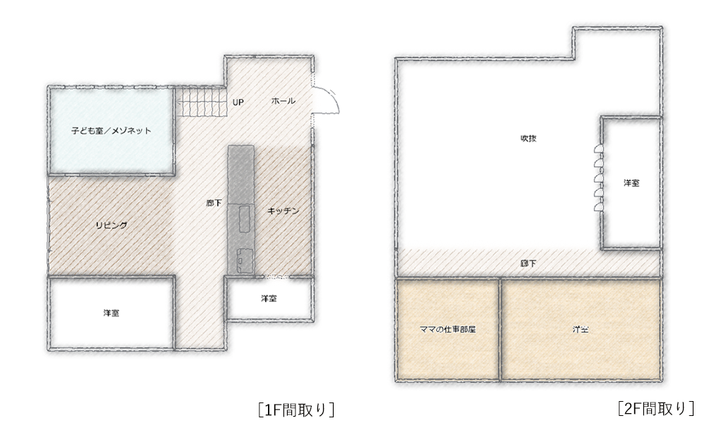 ▲【子どもとネコと暮らす家】デザイナーの手描きラフ案