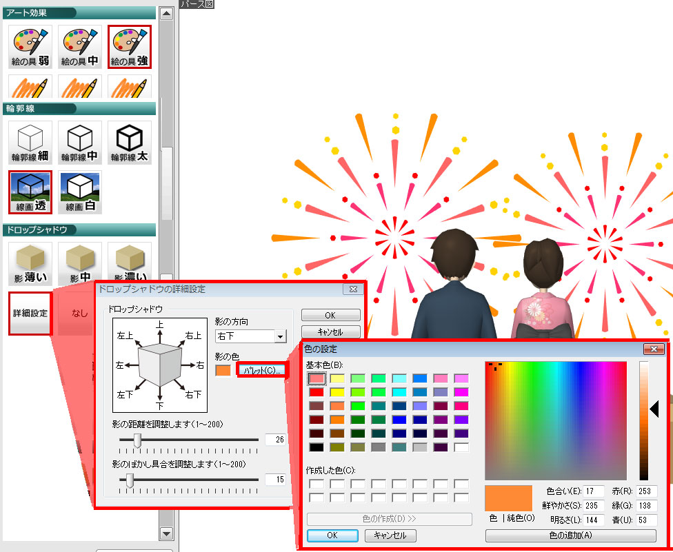 ※浴衣の人物のデータは追加素材ダウンロードページから追加できます(ユーザー様限定の無料サービスです)