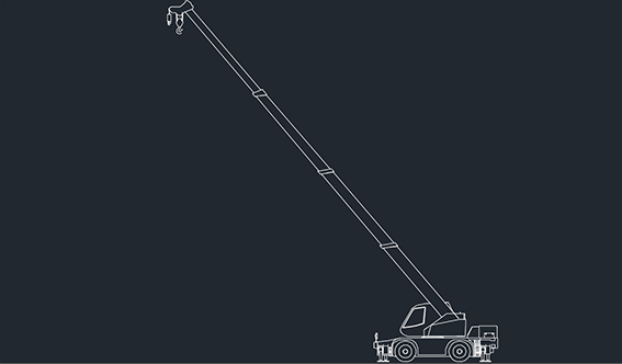 重機の(バックホウ、クレーン、トラック)の2次元・3次元CADのデータを無料ダウンロードできます。