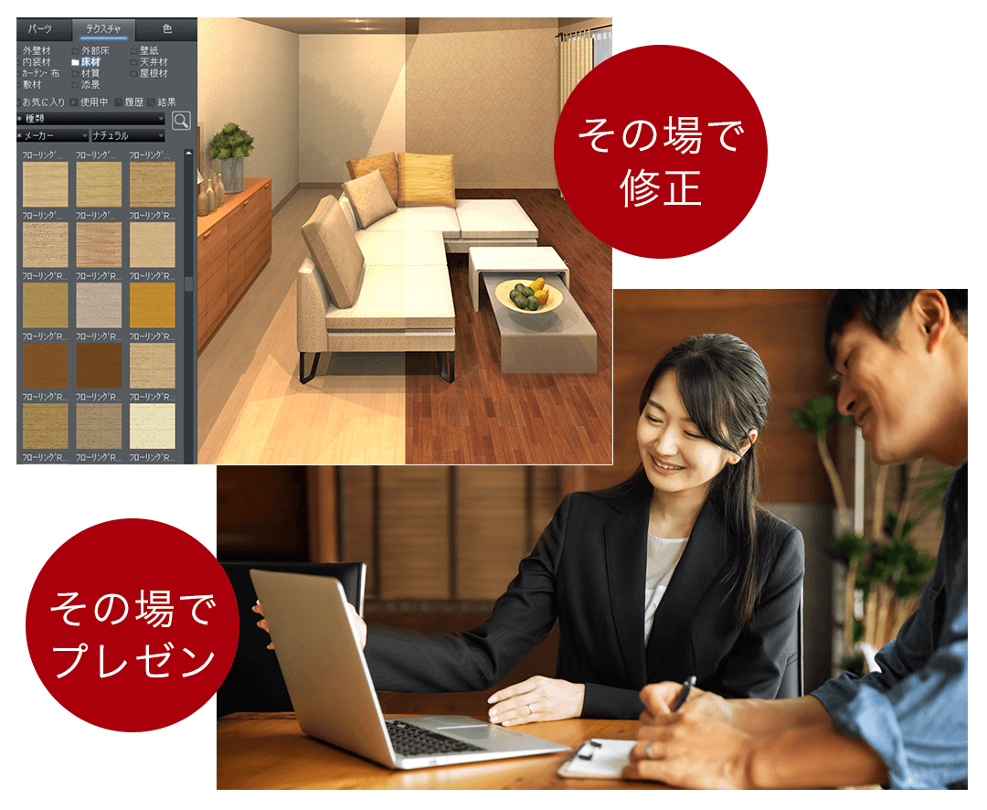 部屋の中を歩き回るウォークスルーや空間を360°見渡せるパノラマ画像なら、施主様にイメージが伝わりやすく、決断の後押しに繋がります。