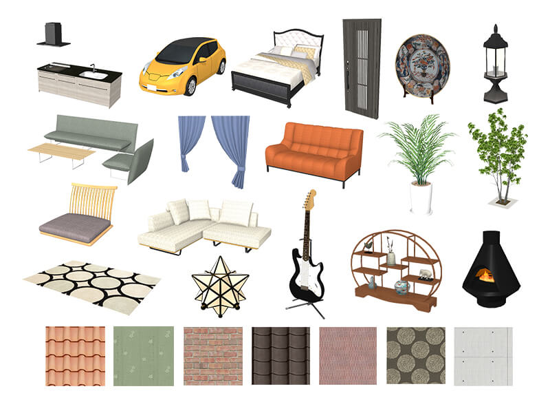 建具や住宅設備、家具などバラエティ豊富なデータ素材を11,400点収録。