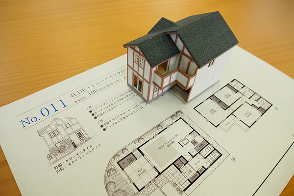 お客様は、資料の平面図で間取りを確認しながら、住宅模型を手にとってリアルな空間として間取りプランを確認することができるというわけです。