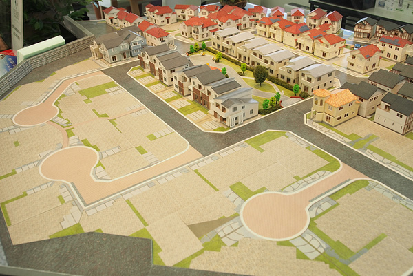 「127棟の分譲住宅は、外観デザインは同じコンセプトでもすべて間取りが違うので、同じ区画のお隣同士の模型を並べて間取りを比較して見るということができるのも、この住宅模型ジオラマならではですね。」