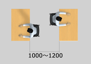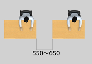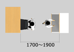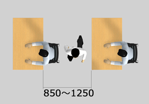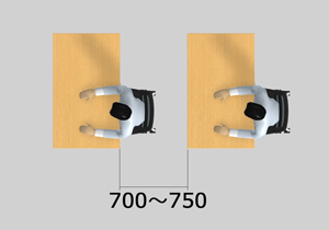 オフィスで人が快適に動ける空間例と目安となる基準寸法を掲載しています。(単位:mm)