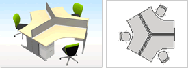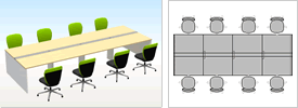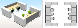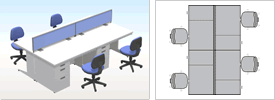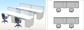 オフィスにおける、机や椅子の一般的なレイアウト例を掲載しています。