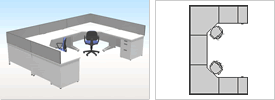 パネルにより区切られ集中思考作業に適したオフィスレイアウト。