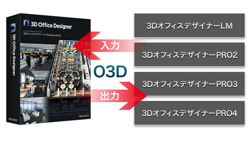 3Dオフィスデザイナーの旧形式(O3D)の入出力機能を搭載しています。