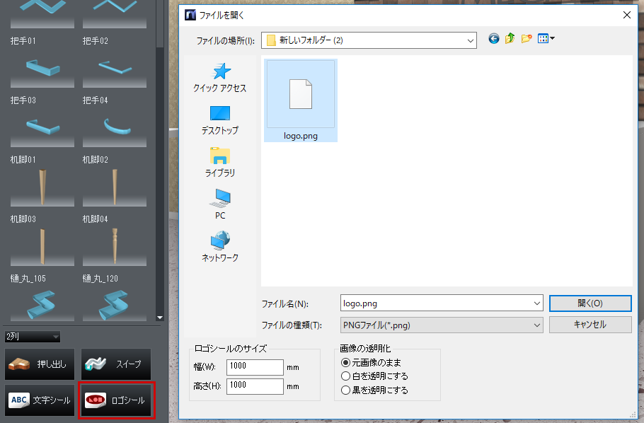 ロゴデータを読み込み、貼り付けるだけで社名や部署の看板が作成可能。