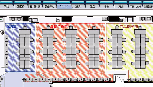 ゾーニング専用のレイヤが用意されているので、ゾーニングの作業中に躯体図に影響を与える心配はありません。