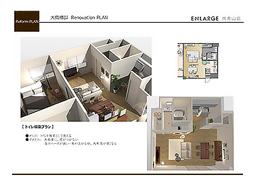弊社では3D住宅リフォームデザイナーで作成したリフォーム後の3Dパースをつかって、全体イメージから細部の仕様まで詳しく解説したプレゼンボードでお客さまと打合せを進めています。