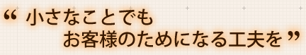 小さなことでもお客様のためになるように工夫し考えることです。