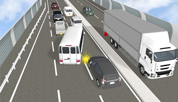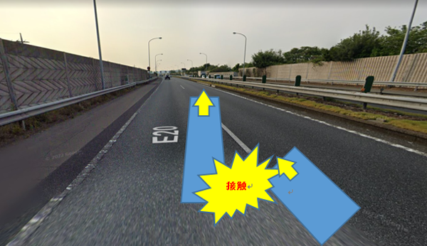 車線変更時に起きた接触事故の状況図。(提供:東京消防庁)