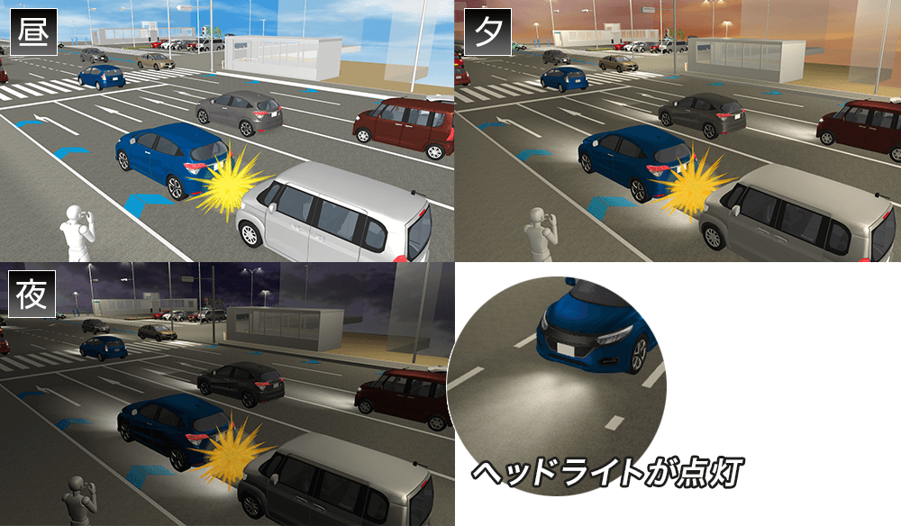 昼/夕/夜といった時間別状況の表現もでき、道路照明灯や車のヘッドライトの明るさ調整なども可能です。