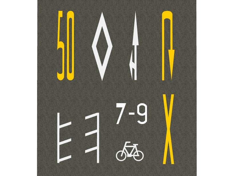 規制や指示の路面標示も多数収録しているので、配置するだけで簡単に道路を再現できます。
