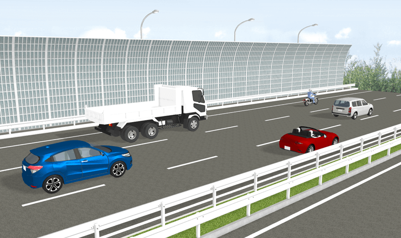分離帯、防音壁、建物、塀など道路周辺環境を再現することで、高速道路や市街地など、様々な事故現場に対応できます。