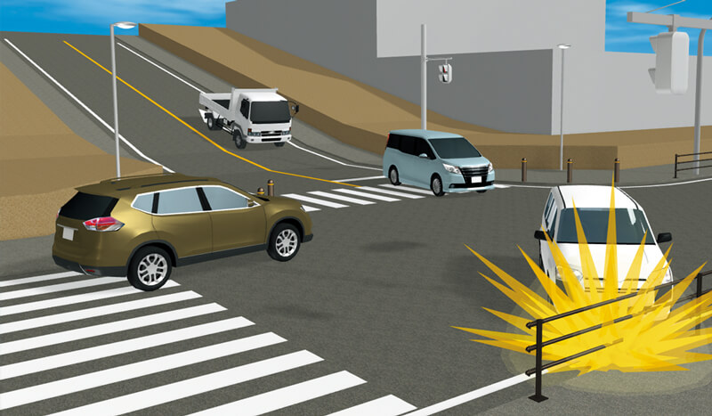 雨・雪・霧の表現の他、雨天・積雪時の路面への映り込み表現ができ、映り込みの度合いも調整可能です。濡れた路面や路面凍結によるタイヤのスリップ事故などを再現できます。