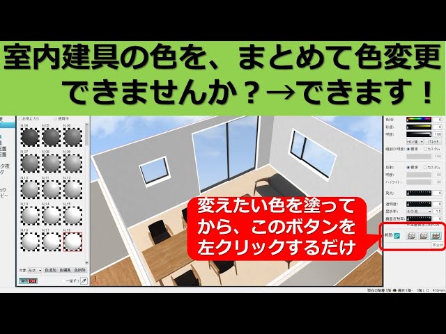 今回は窓のサッシや建具の色を一斉に変える方法をご紹介します。