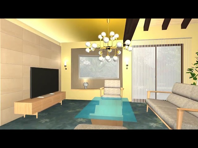 床は柄の入ったタイルで雰囲気を変えて、リラックスしたリビングとは対照的に活動的な空間としてイメージしてみました。