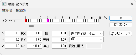 ⑤数秒後に開いた状態になるように設定します。(今回の扉ではRZに角度を設定)
