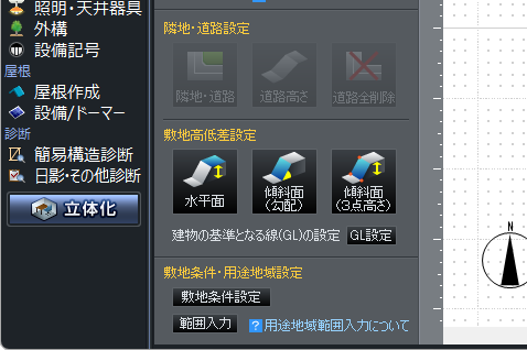 「敷地高低差設定」は、以前の突破ファイル案件でも使用した機能です。
