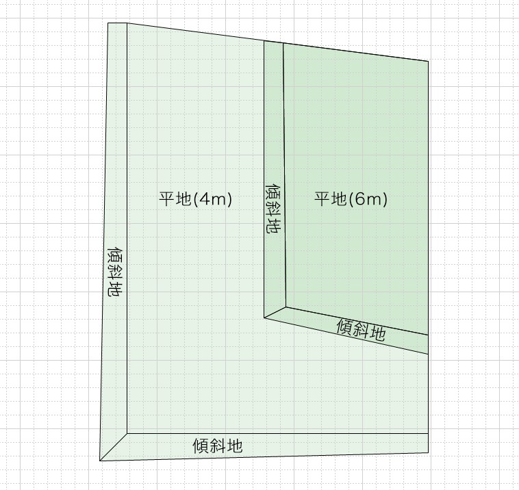 今回は「敷地高低差設定」で2つの平らな土地と傾斜地で描き、