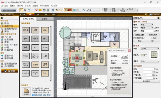 ロフト、ドライエリア、ウッドデッキは間取りに配置後、「部屋プロパティ」でいくつかの値を設定するだけで作図ができるようになった。