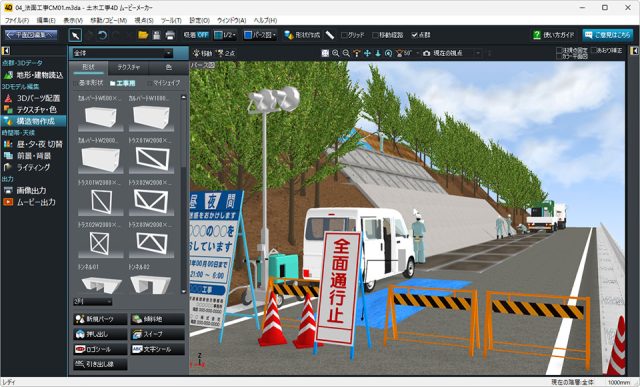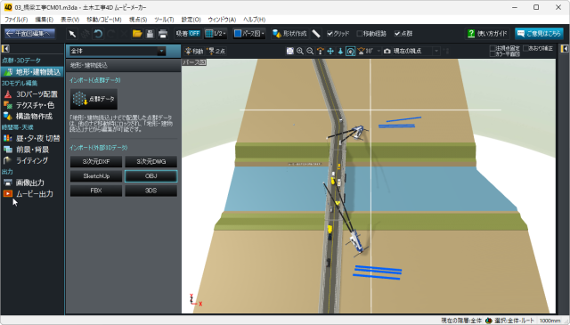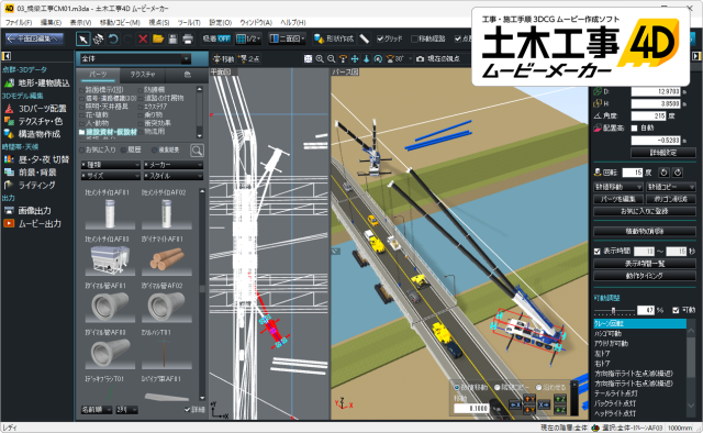 「土木工事4D ムービーメーカー」は、施工の流れを3DCGで直感的に可視化できるソフトウェアです。