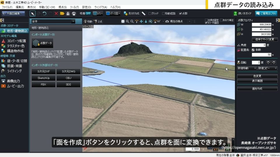 地形・建物読み込み(点群ファイルと各種3Dデータの読み込み)