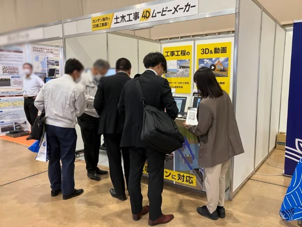 ▲「北海道 建設開発総合展2025」(10月8日・9日開催)に「土木工事4D ムービーメーカー β版」を出展、自社ブースで名刺交換した方に実施したアンケートでは 「完成度の高い3Dイメージや工事工程の動画を作りたい」 が最多でした。