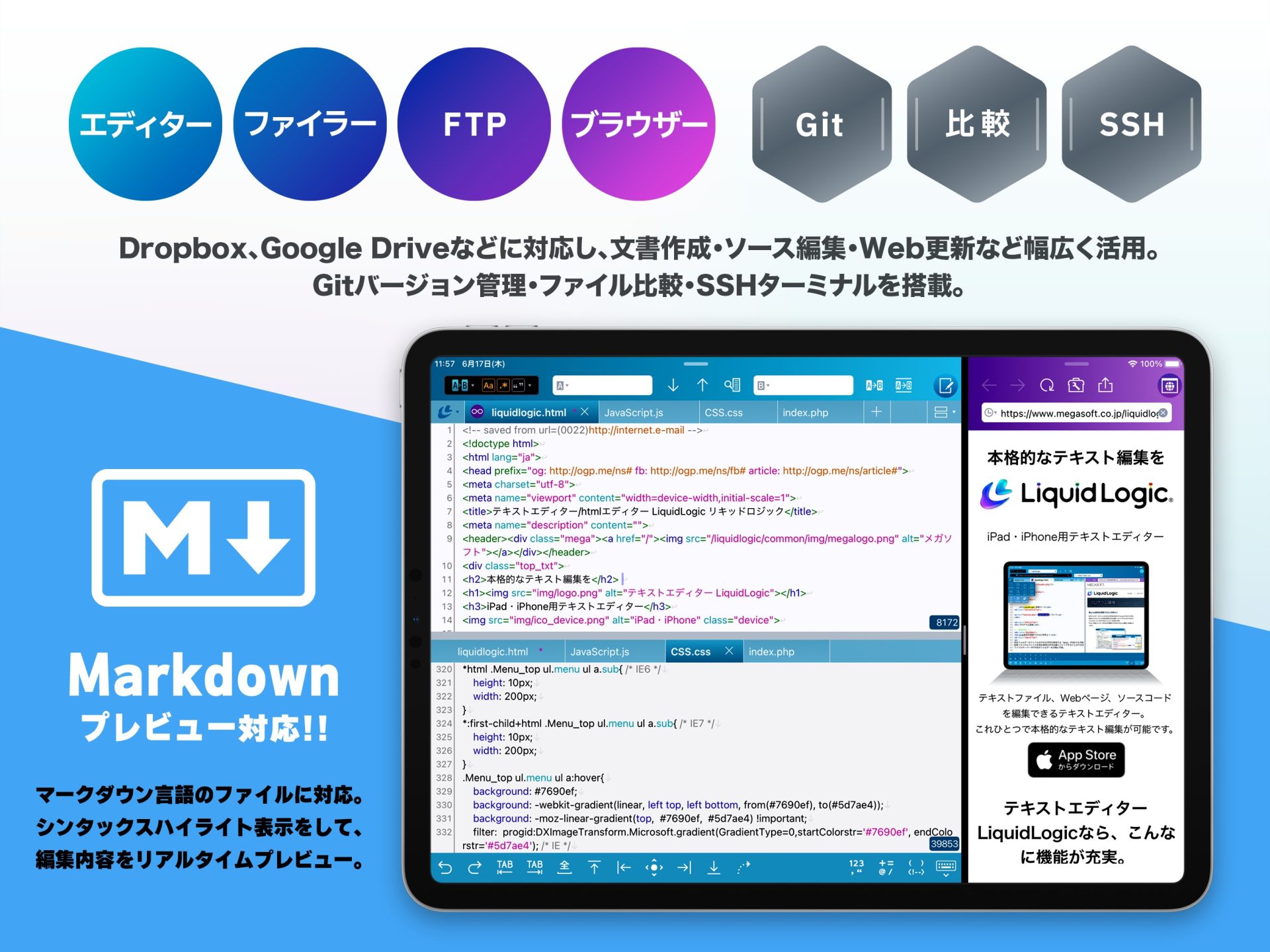 世界36の国と地域で配信、総ダウンロード数18万8,000を突破 Markdown記法に対応したiOS用テキスト編集アプリ「LiquidLogic」を公開 リアルタイムプレビューで文書作成や開発ドキュメント編集の効率を向上