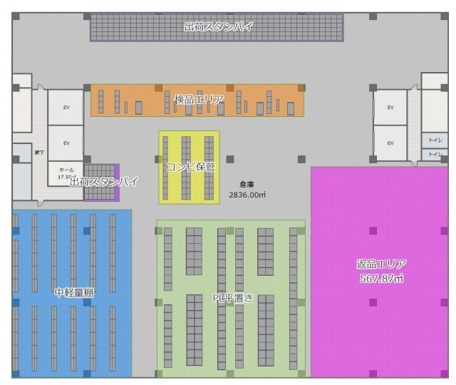 物流倉庫3Dで作成した倉庫レイアウトの平面図