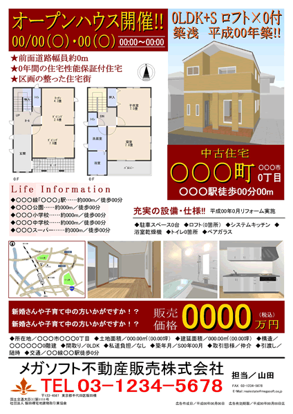 不動産チラシ一覧に戻る 戻る PDF形式で不動産広告チラシテンプレートをダウンロード JPG形式で不動産広告チラシテンプレートをダウンロード 次へ