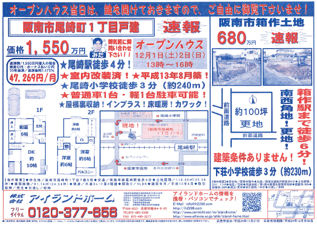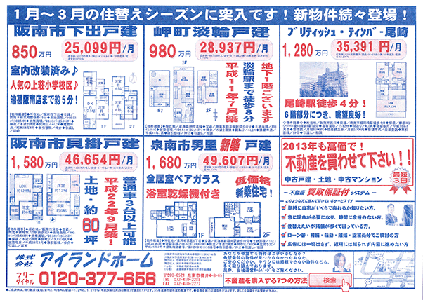 泉南市を中心に不動産売買・仲介から新築・リフォームまでを手掛けるアイランドホームでは、新聞折り込みチラシを毎週配布していますが、それらはすべて自社で制作しています。