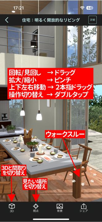 画面上の操作説明は、メガソフト製の3Dデータ(M3DA/M3D)を表示した場合です(表示するデータにより操作方法は少し異なります)。