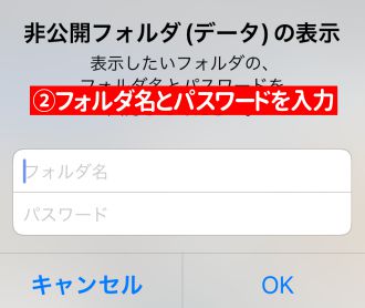 • フォルダ名とパスワードは、公開設定が”指定者に見せる”になっているデータを表示する場合に使用します。